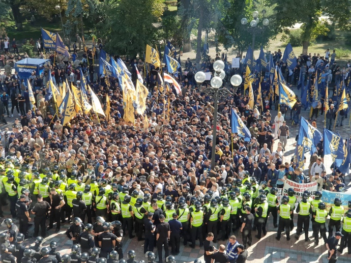 Вранці 20 вересня під Верховною Радою поштовхалися представники "Нацкорпусу" і "Нацдружин" з поліцією.