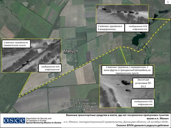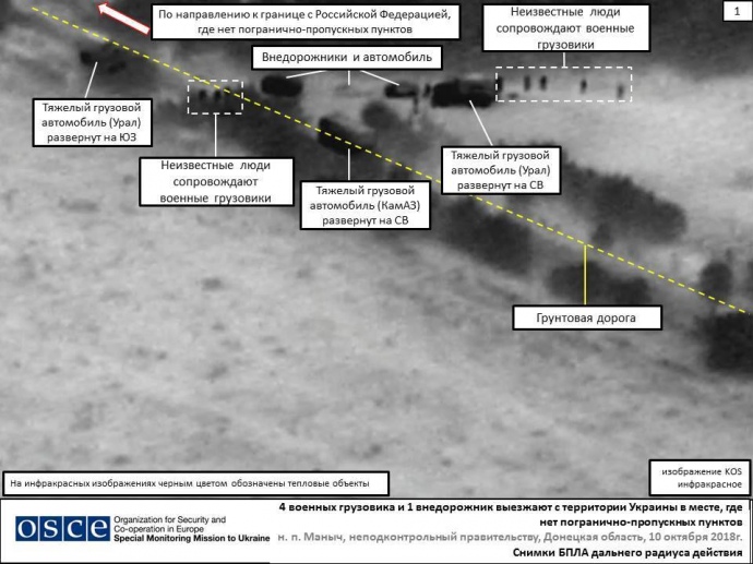 "Місія раніше вже фіксувала колони вантажівок з критими вантажними відсіками, які заїжджали в Україну і виїжджали з неї в цьому районі", - йдеться у повідомленні.