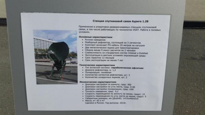 На двох фотографіях бойовик позує поруч з іншим найманцем на тлі зеленої супутникової антени. Ця радіолокаційна тарілка зовні виглядає так само як і супутникова антена російської системи зв'язку Ауріга-1,2В, яка стоїть на озброєнні армії РФ з 2014 року.
