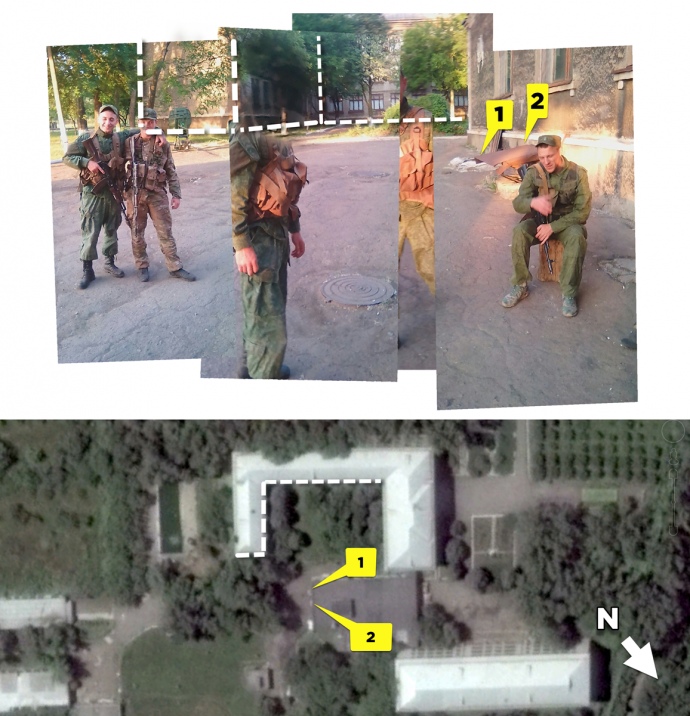 Об'єднавши зображення будівель та інших орієнтирів на задньому плані фотографій, дослідники визначили, що на них зображено П-образну будівлю, що використовується 11-тим мотострілковим полком бойовиків "Восток", яка знаходиться в Макіївці.