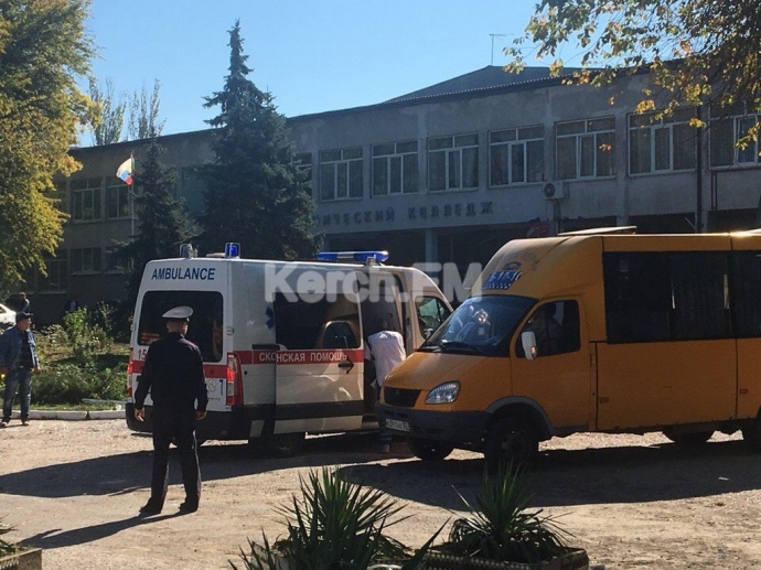 В анексованому Криму, після вибуху металургійному коледжі в Керчі, не вистачає машин швидкої допомоги для транспортування всіх поранених і загиблих, рятувальники залучили для цього громадський транспорт.