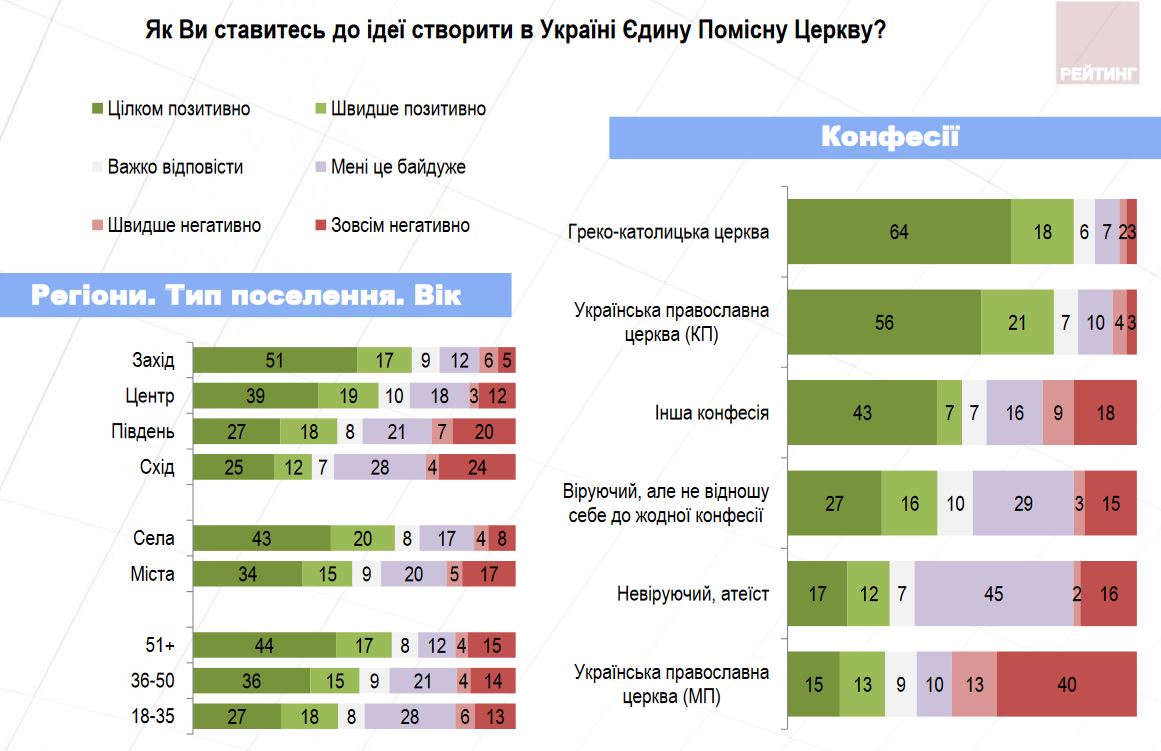 Проти ініціативи надання автокефалії єдиній УПЦ висловилися загалом 53% парафіян МП. З них 40% ставляться "зовсім негативно", 13% - "швидше негативно".