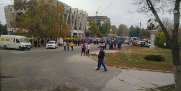"До площі Великих національних зборів, де мав відбутися мітинг, їх не довозили: автобуси припаркували за кілька кварталів від центру Кишинева, потім організатори шикували людей у колони, роздавали прапорці і транспаранти, після чого всіх вели на центральну площу", - пише видання.