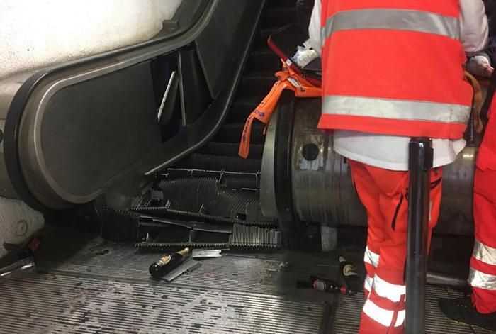 Ескалатор обвалився, коли на ньому їхали російські футбольні фанати, що прямували на матч Ліги чемпіонів між італійською "Ромою" і ЦСКА, передає "Європейська правда" з посиланням на ANSA.