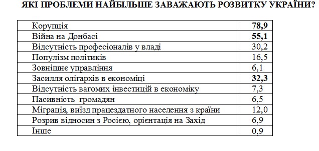 На думку українців, найбільшою проблемою, що заважає розвитку нашої країни, є корупція – це зазначили 79% населення.