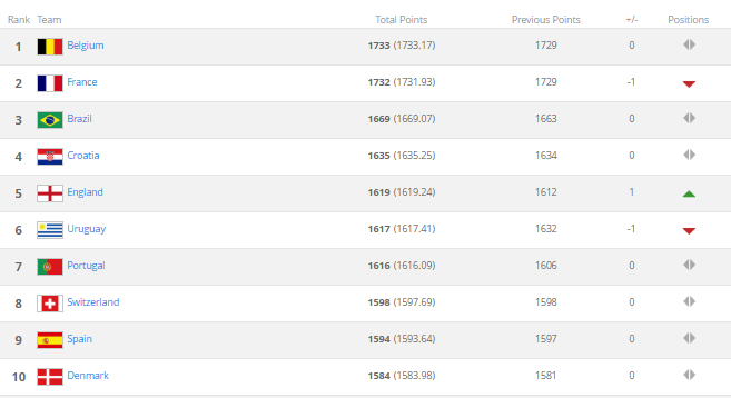 До речі, Сквадра Адзурра в рейтингу для національних команд посідає лише 19-ий рядок. Очолює рейтинг ФІФА збірна Бельгії, в якої 1733 пункти.