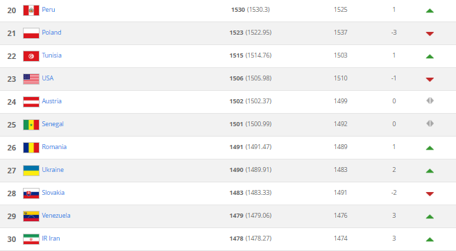 Збірні Словаччини та Чехії, які є суперниками синьо-жовтих у групі Ліги Націй посідають 28-ме та 48-ме місця відповідно.