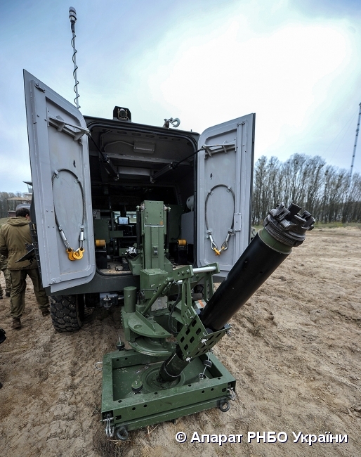 За його словами, Мобільний мінометний комплекс створено українськими виробниками на базі бронеавтомобіля "Барс-8".