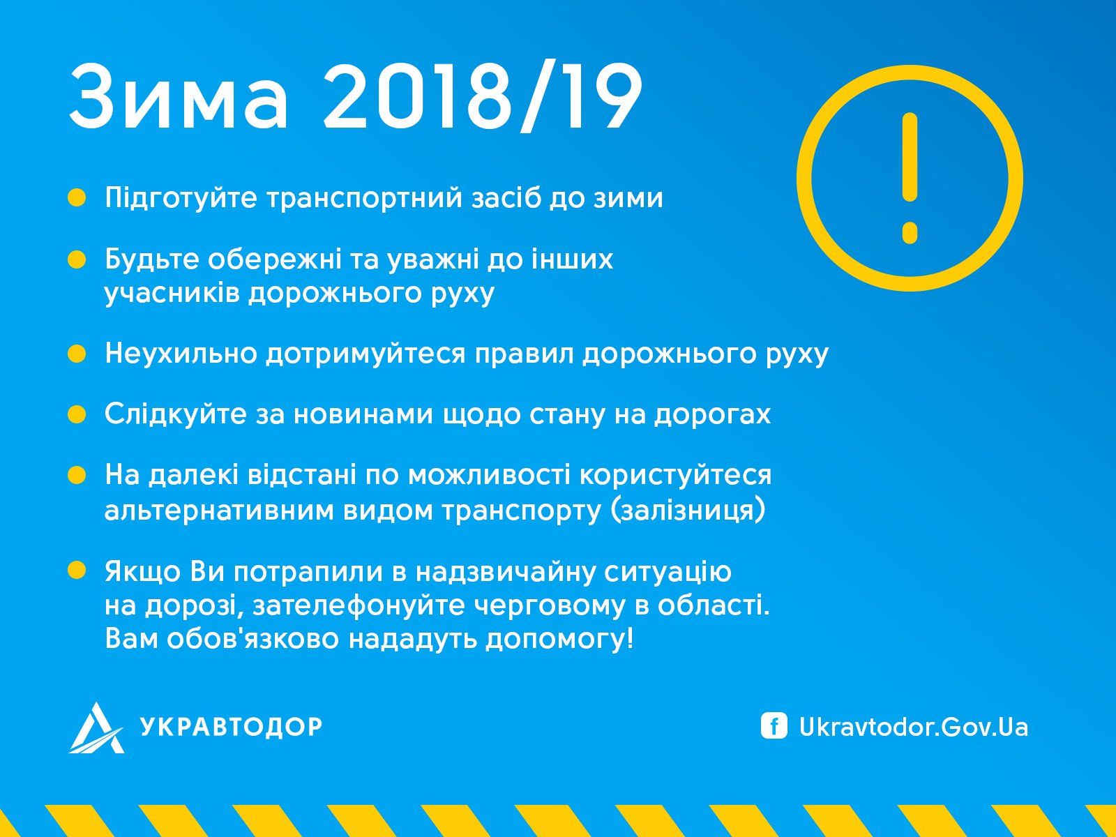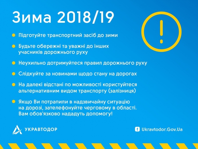 "Якщо ви потрапили у надзвичайну ситуацію на дорозі – телефонуйте на "гарячу" лінію "Укравтодору": 044 2871140".