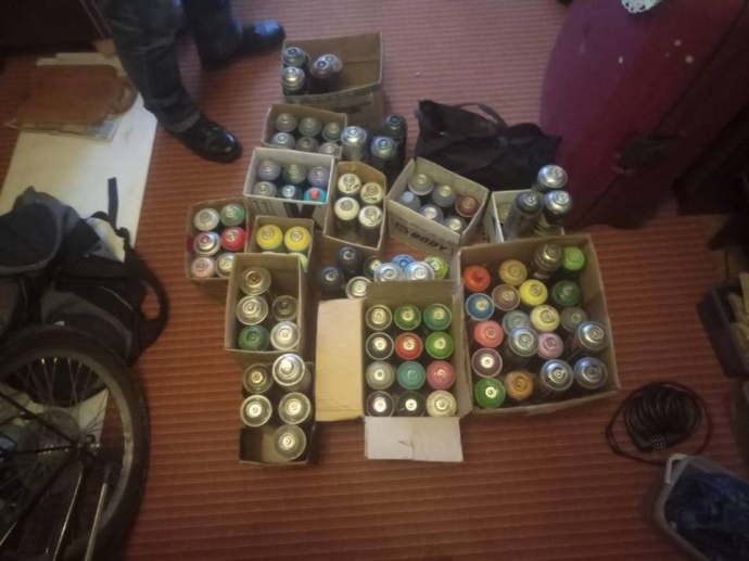 За результатами проведення 7 обшуків за місцем проживання вандалів виявлено та вилучено балаклави, балони з фарбою, запчастини від електрички, речовини, схожі на наркотичні засоби, рукавички, відеокамери та інші речові докази.
