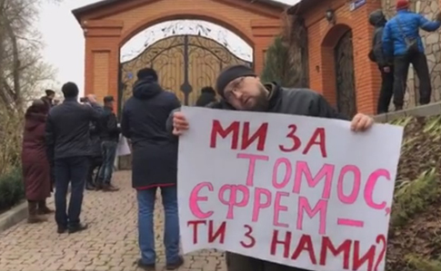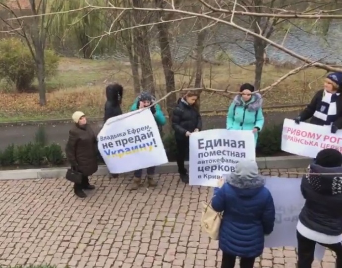 У Кривому Розі під маєтком митрополита УМП МП Єфрема (в миру - Іван Кіцай) провели акцію, протестуючи проти його позиції про надання Україні томосу.