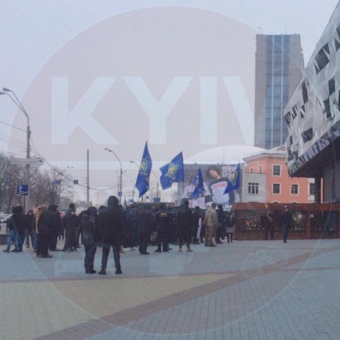 Представники націоналістичних організацій влаштували пікет біля столичного торгового центру "Ocean Plaza", запалили димові шашки.