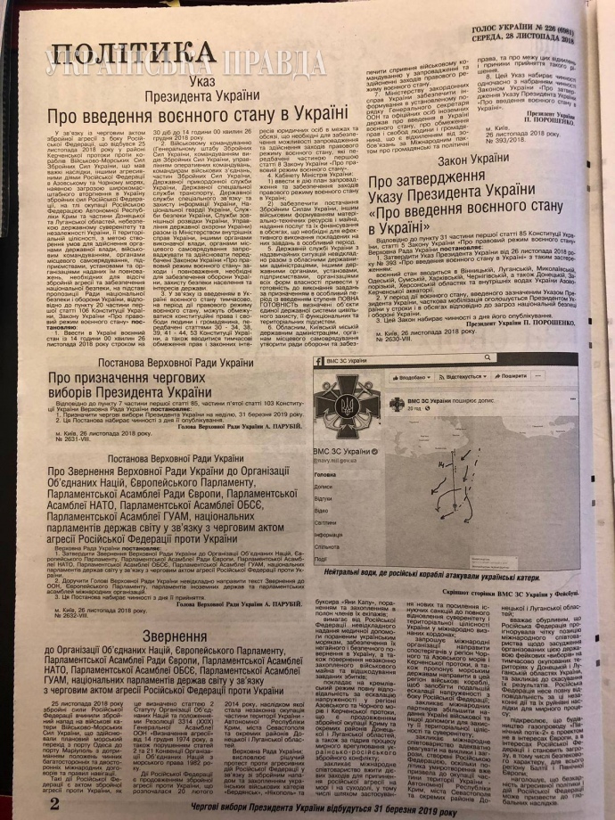 Також у газеті опублікована постанова Ради про призначення чергових виборів президента України на 31 березня 2019 року.