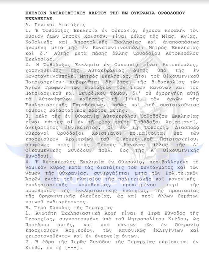 Це слідує зі статуту, запропонованого Священним синодом Вселенського патріархату, одну зі сторінок якого грецькою опублікувала агенція церковних новин Romfea.