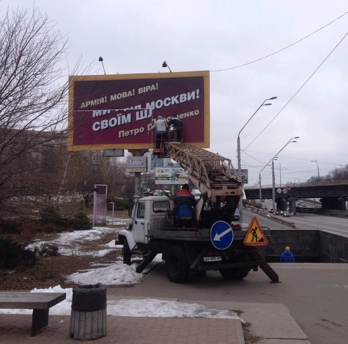 Майбутній кандидат у президенти лідер партії "Батьківщина" екс-прем’єр Юлія Тимошенко звинуватила чинного главу держави Петра Порошенка у "фальшивому патріотизмі" і порадила виправити написи на бордах.