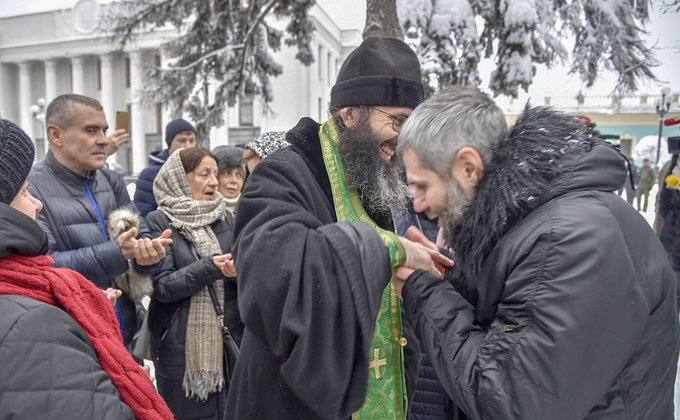 Прихильники УПЦ МП влаштували під Радою безстроковий молебень