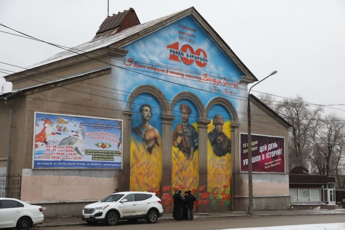 У Запоріжжі невідомі закидали фарбою фрагменти настінного триптиху, відкритого на честь 100-річчя Української революції.