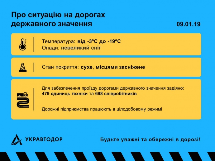 Про це 9 січня повідомили у прес-службі "Укравтодору".