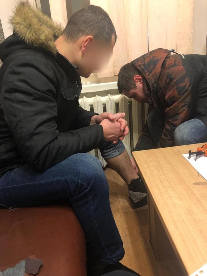 - 13 січня 2019 року у Києві після передачі виконавцю другої частини обумовлених коштів замовників затримали.