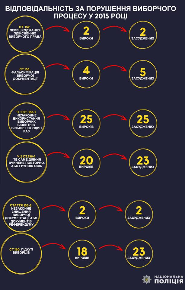 "Однак маємо хоча і поки що єдиний, але факт засудження до реального терміну позбавлення волі – за підкуп виборців", – вказує речник Нацполіції.