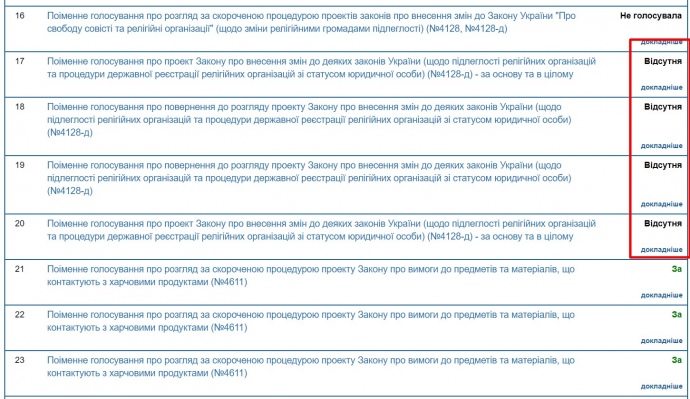 Водночас, за даними сайту Верховної Ради, картка самої Кужель була відсутня протягом цих чотирьох голосувань.