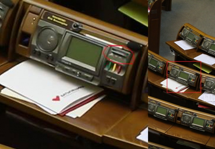 Активісти зазначають, що народний депутат може голосувати своєю карткою з будь-якого місця в залі, проте уточнюють, що під час цього голосування на табло системи "Рада" чітко видно, що "за" голосувало саме місце Юлії Тимошенко.