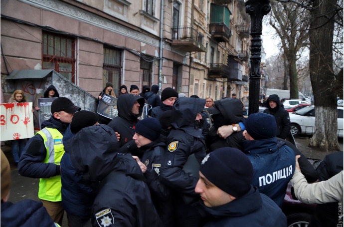 У свою чергу у відділі комунікації поліції Одеської обл. заявили, що в результаті інциденту були затримані лише троє учасників акції.