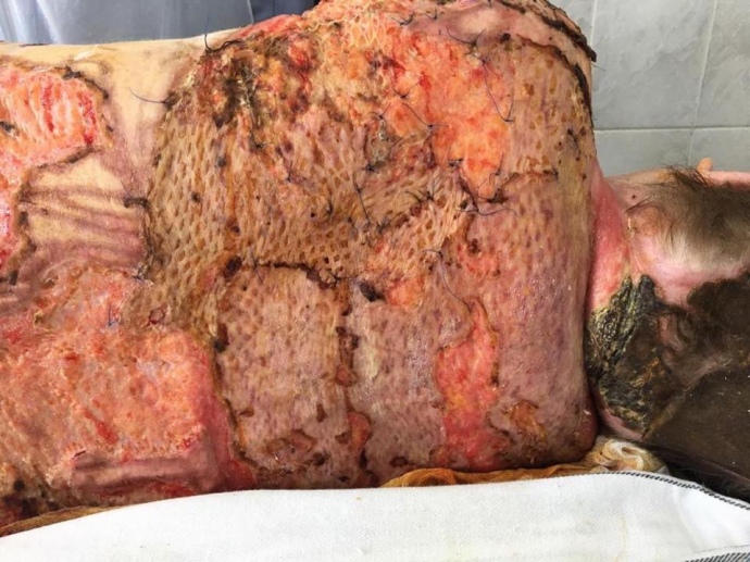 "Дев‘яносто шість днів у реанімаційному відділенні. Рани на все тіло. Спалене волосся. Обпечені очі. Постійний нестерпний біль. Тривалі виснажливі лихоманки. Чотирнадцять важких операцій. Щоденні перев‘язки під наркозом. Літри перелитої крові", - написав він.