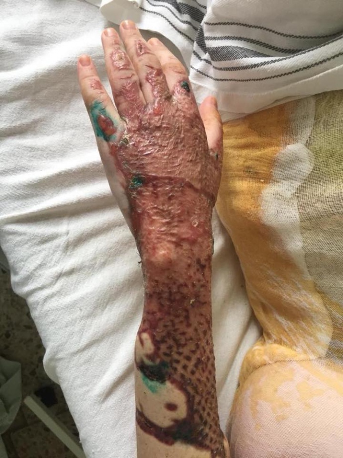 Через численні опіки у Гандзюк тижнями були зафіксовані руки та ноги, а їжу вона приймала через трубочку.