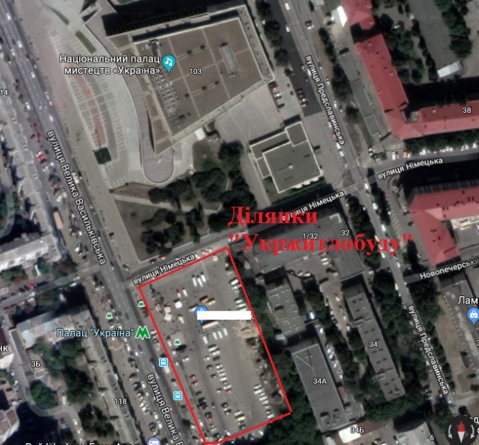 "Згідно з цим документом, нове будівництво планується на двох ділянках – 0,64 га та 0,21 га. Перша належить "Укржитлобуду" на праві приватної власності, а другу фірма орендує у міста. Відзначимо, що ці ділянки знаходяться прямо біля входу в метро на ст. "Палац Україна"", - йдеться у публікації.