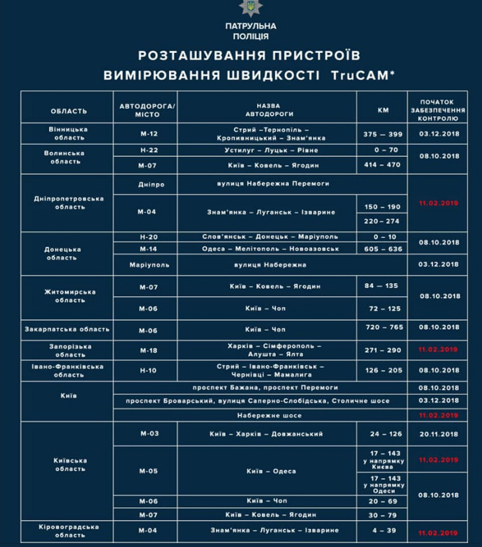 "Увага! Відсьогодні збільшилась кількість радарів TruCam, тепер їх не 30, а 50", - йдеться в повідомленні.