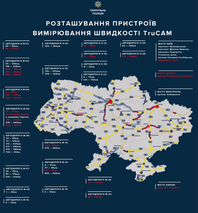 Нові радари з'явились на Одеській трасі, Набережному шосе в Києві, на вулицях Дніпра і Харкова.