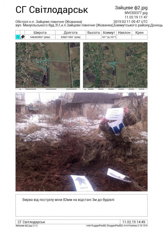 Під час чергового відвідування Зайцевого патруль спостережної групи української сторони СЦКК отримав від українських військовослужбовців повідомлення про факт влучання боєприпасу окупантів на подвір’я житлового будинку по вулиці Мануїльського 3/1.
