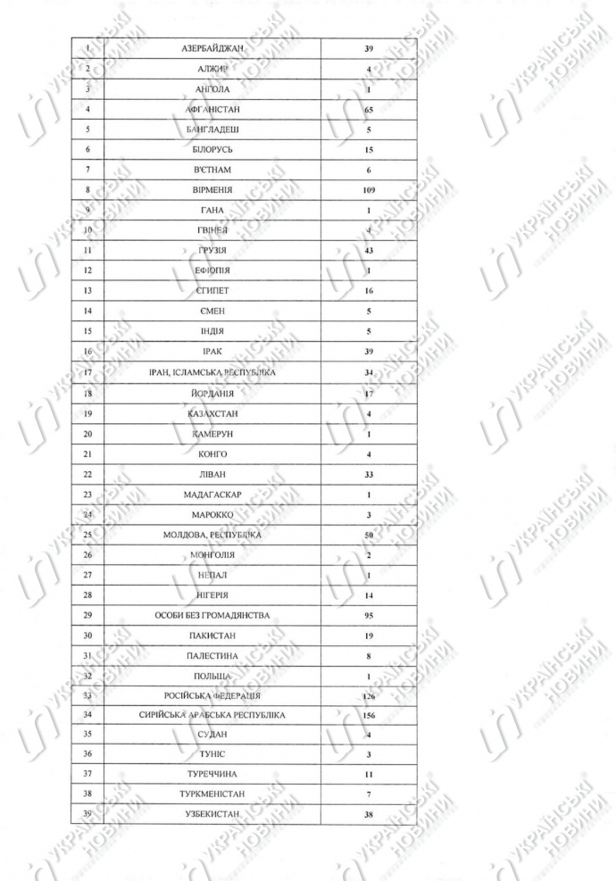 Так, 156 прийнятих до громадянства осіб вихідці з Сирії, 126 - з Росії, 109 - з Вірменії, а 95 були особами без громадянства.
