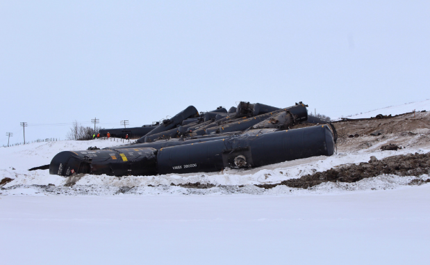 На заході канадської провінції Манітоба зійшов із рейок потяг, який перевозив сиру нафту. За попередніми даними, з колії зійшли 37 вагонів-цистерн, внаслідок чого стався витік сировини.