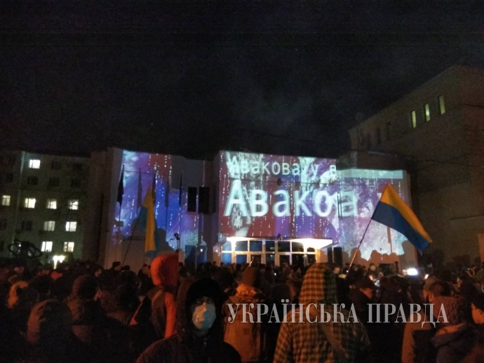 Учасники акції запалили фаєри і спроектували напис "Авакова у відставку".