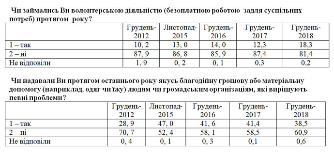 Також торік зріс відсоток тих, хто займався волонтерською діяльністю з 12% до 18%.
