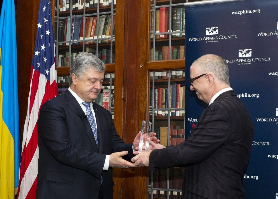 Президент Петро Порошенко під час робочого візиту до США отримав відзнаку "Міжнародний державний діяч" Ради з питань світових справ Філадельфії.