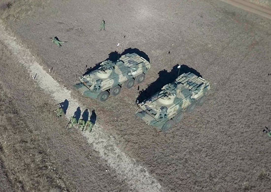"В рамках навчання розвідники здійснили марш-кидок в район приземлення гелікоптера на бронетранспортерах БТР-82А по пересіченій горбистій місцевості з подоланням перешкод", - йдеться в повідомленні відомства.
