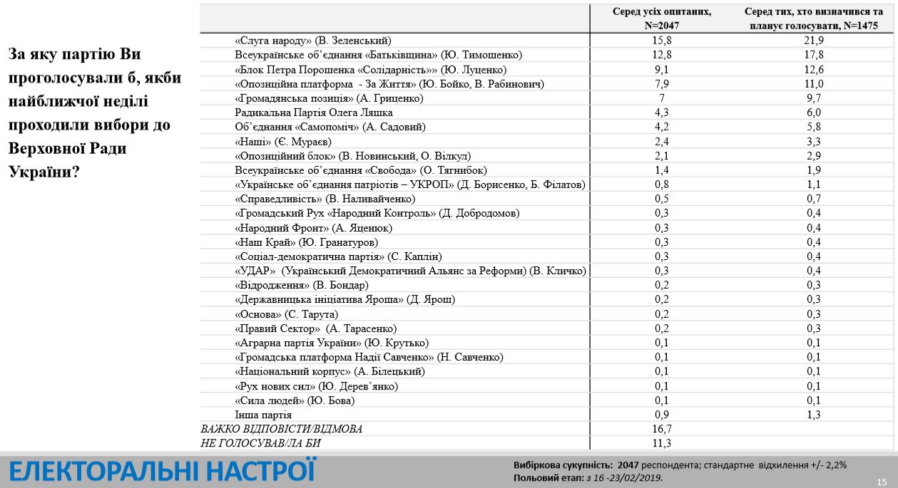 Опитування проводилося з 16 по 23 лютого. Його статистична похибка складає +/- 2,2%.