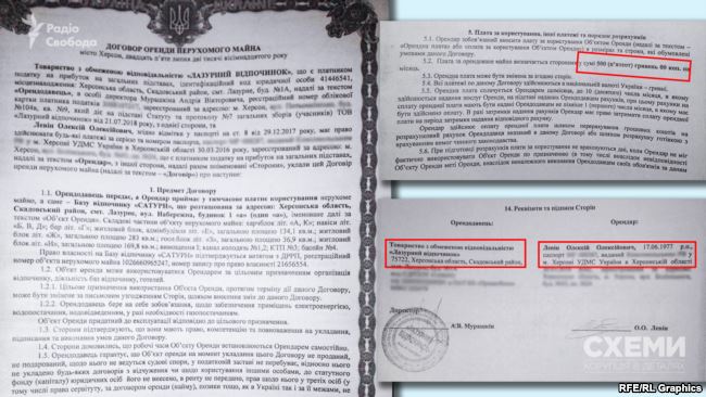 У документі йдеться, що комплекс здає в оренду радник з юридичних питань голови Херсонської облради та його адвокат Андрій Мурашкін, в управління Олексія Левіна, якого наразі підозрюють в організації вбивства Гандзюк.