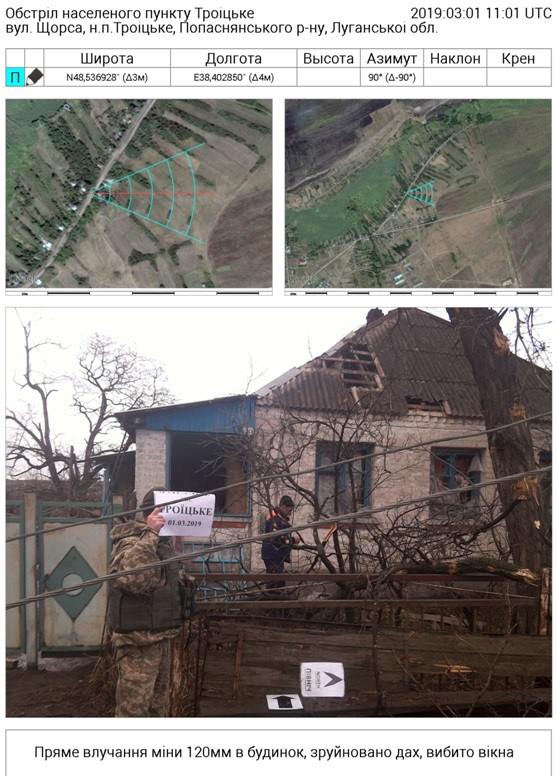 "На місцях обстрілу спостережною групою української сторони СЦКК виявлено та задокументовано суттєві пошкодження чотирьох будинків від влучання мін калібру 120 мм. Внаслідок пошкоджень від розриву мін на вул. Щорса у цьому ж селі було перебито лінію електропередач", - йдеться у повідомленні.