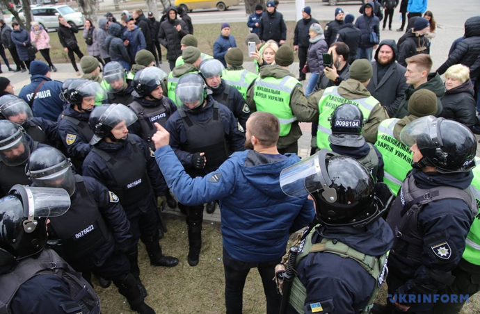 "Періодично виникали сутички. На трибуну вийшли представники Нацкорпусу, які виступили на підтримку перейменування вулиці на честь Гандзюк", - зазначили у ЗМІ.
