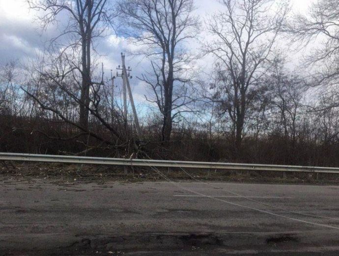 У Чернівецькій області через сильний вітер на трасу поблизу пункту пропуску "Порубне" впали проводи високовольтної лінії.
