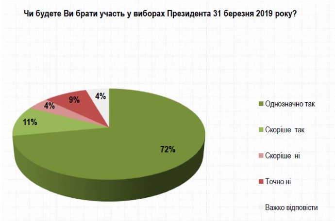 83% українців у тій чи іншій мірі декларують свою готовність взяти участь у виборах президента 31 березня 2019 року.