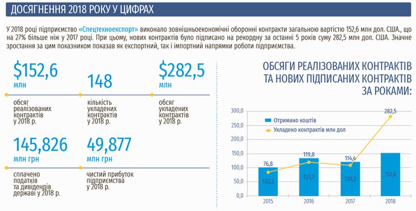 Держкомпанія "Спецтехноекспорт" заявила про підписання минулого року контрактів з 30-ма країнами – головними експортними партнерами, як Індія, Алжир, М’янма, Китай, Екваторіальна Гвінея. Основні роботи – модернізація радянської авіації, бронетехніки, систем протиповітряної оборони.