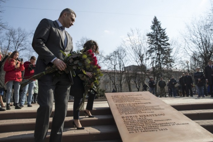 Біля посольства Росії у Києві відкрили сквер імені російського опозиціонера Бориса Нємцова.