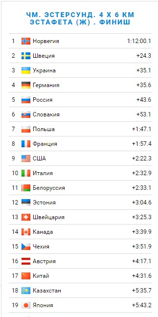 На фінальному етапі в естафеті за Україну бігла Валя Семеренко, яка виграла 0,4 секунди у Лаури Дальмаєр з Німеччини. На обох вогневих рубежах змазала по разу, але це не завадило їй без особливих проблем пройти фінішний відрізок і втримати третю сходинку від зазіхань німкень.