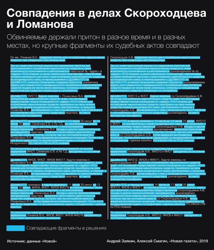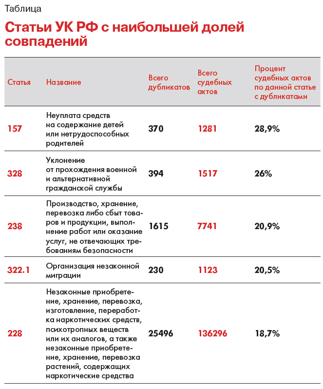 Дата-відділ і волонтери "Нової газети" проаналізували вироки районних судів в Росії за рік і знайшли 50 тисяч судових рішень, які збігаються майже дослівно.
