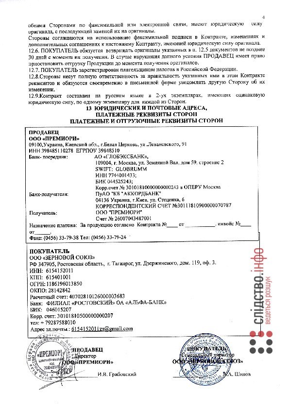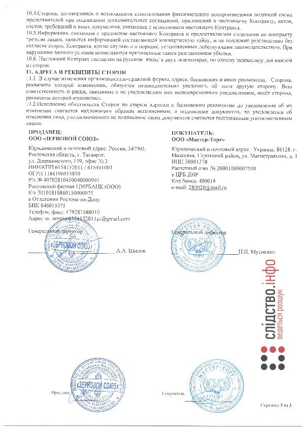 Зокрема, за кілька днів до укладання договору з українською "Преміорі", "Зерновий союз" підписав ще один контракт з макіївською фірмою "Мастер-Торг" на майже 8 млн доларів.